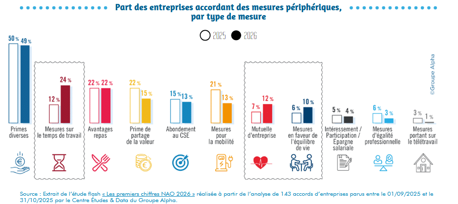 L’étude révèle une tendance à l’attentisme patronal. Alors qu’en 2024 seules 23 % des entreprises ne négociaient que des mesures périphériques, ce chiffre grimpe à 53 % pour 2026. Pour les entreprises qui accordent encore des revalorisations, la moyenne se situe à peine à 1,7 %, un niveau qui peine à compenser les pertes de pouvoir d’achat accumulées les années précédentes. Secafi souligne que si l’inflation ralentit, les prix, eux, ne baissent pas, maintenant une pression constante sur les salariés.